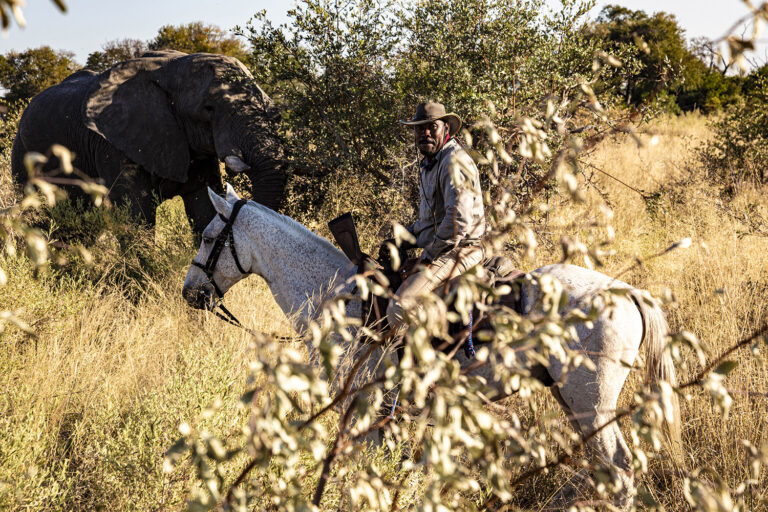 Tierbegegnungen auf Augenhöhe: Vom Pferd aus verschmilzt die Silhouette des Reiters mit der des Pferdes, was oft ruhigere, nähere Sichtungen von Antilopen, Giraffen oder sogar den Big Five ermöglicht.